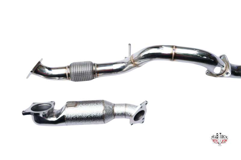 - The catted downpipe is constructed to optimize the high flow of exhaust gasses and uses a 200 cell catalytic converter.